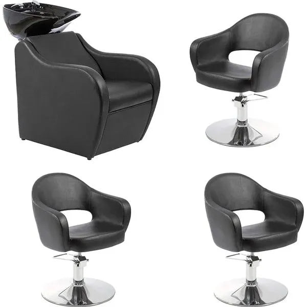 Entdecken Sie die perfekte Kombination aus Stil und Funktionalität mit unserem Set aus drei Friseurstühlen Mop und einer Friseurwaschanlage Faid in elegantem Schwarz. Dieses hochwertige Set ist die ideale Wahl für jeden modernen Friseursalon.