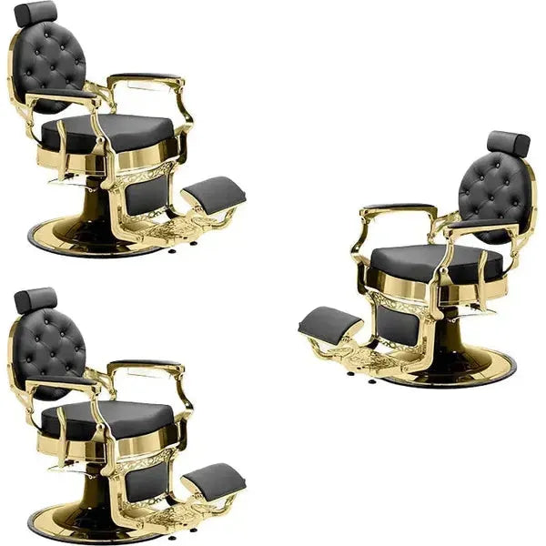 3x Barber stuhl in Gold-Schwarz, Herren Friseurstuhl Mae, Luxuriöser Barbershop stuhl für stilvolle Salons