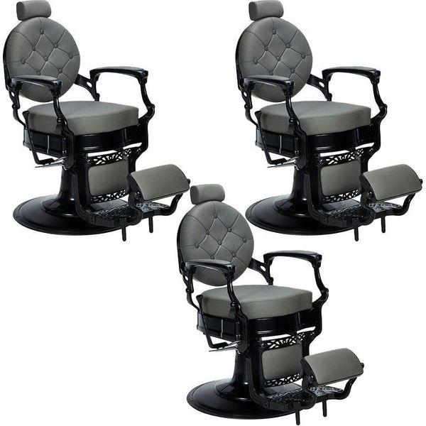 3x Barber stuhl in Grau, HerrenFriseurstuhl Check, Luxuriöser Barbershopstuhl für stilvolle Salons