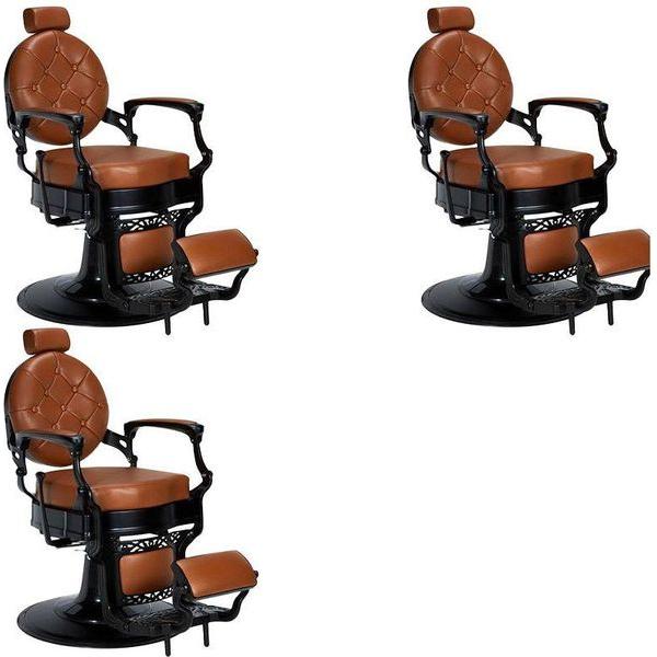 3x Barber stuhl in Braun, Herren Friseurstuhl Check, Luxuriöser Barbershop stuhl für stilvolle Salons