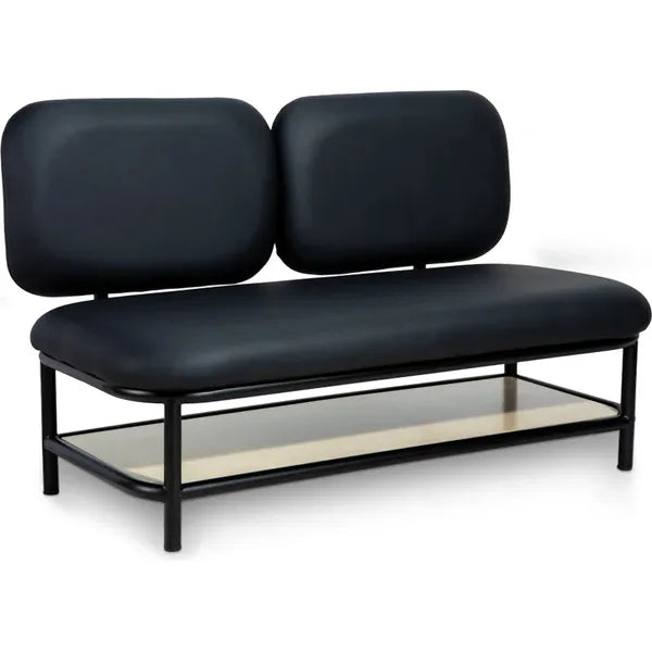 Der Friseur-Wartebereich Porto-B besteht aus feuerhemmendem PVC-Vinyl, das nicht nur langlebig, sondern auch leicht zu reinigen ist. Die robuste, tubular schwarze Struktur bietet Stabilität und Langlebigkeit, während die Holzablage praktische Funktionen für Ihre Kunden bietet.