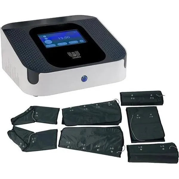 Dieses digitale Beauty-Gerät mit Touchscreen kombiniert zwei Funktionen: Thermotherapie und Pressotherapie. Der Anzug besteht aus Stiefeln, Beinen, Bauchgurt und Armen. Es enthält auch eine Decke zur Aufbewahrung der Kabel. Ideal, um den Kreislauf zu verbessern und Fett durch Lymphdrainage zu beseitigen. Es trägt auch zur Zellsauerstoffversorgung und muskulären Entspannung bei.