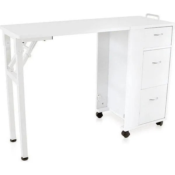 Nageltisch, Maniküretisch Subra in Weiß mit 3 Schubladen und Rollen