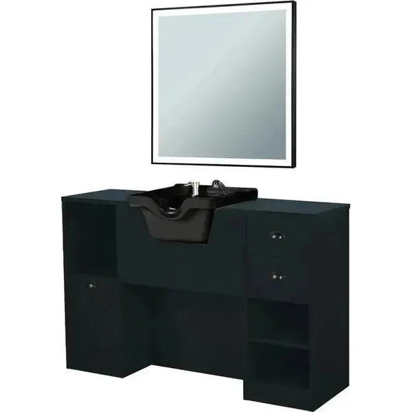 Die Kombination aus modernem Design und praktischen Funktionen macht diesen Friseur Bedienplatz zu einer ausgezeichneten Wahl. Die metallischen, vintage-inspirierten Ziehgriffe verleihen dem Gesamtbild eine stilvolle Note. Zusätzlich sorgt das enthaltene Drainagesystem mit einem hochwertigen Mischbatterie für einen reibungslosen Ablauf.