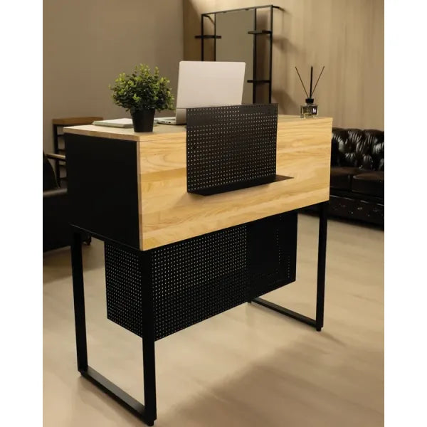 Friseur-Empfangstheke, Friseur Rezeption Finch aus massivem Eichenholz und Schwarzmelamin